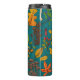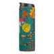 Autumn mushrooms, leaves, nuts and berries on blue thermal tumbler