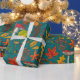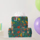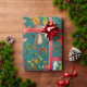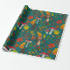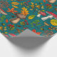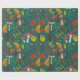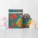Autumn mushrooms, leaves, nuts and berries on blue wrapping paper