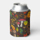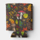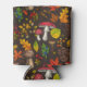 Autumn mushrooms, leaves, nuts and berries on dark can cooler