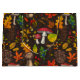 Autumn mushrooms, leaves, nuts and berries on dark large gift bag