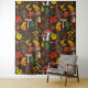 Autumn mushrooms, leaves, nuts and berries on dark tapestry