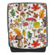 Autumn mushrooms, leaves, nuts and berries on whit backpack