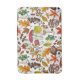Hаnd-painted vector pattern with various autumn mushrooms, fallen leaves, acorns, berries and bugs