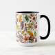 Autumn mushrooms, leaves, nuts and berries on whit mug