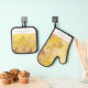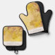 Oven Mitt & Pot Holder Set with Autumn nature oak leaves vintage landscape. Bright yellow and brown fall landscape with oak leaves. Silhouettes of leaves on spotted fall colours rustic background. Watercolor foliage painting background Wedding Oven Mitt & Pot Holder Set. Autumn Oak Leaves Collection.