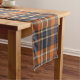 Autumn Orange and Blue Checked Plaid Long Table Runner