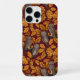 Owls in the autumn oak tree; hand-painted seamless pattern