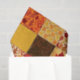 Autumn reds, golds, orange and browns are the colours in this patchwork of assorted designs including fall leaves, chrysanthemums, geometric patterns, damask, burlap texture, and more.