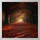 Step into the warmth of fall with this tranquil art print capturing a tree-lined pathway bathed in golden light. Tall trees arch overhead, their fiery red and orange leaves forming a natural tunnel, while a carpet of fallen foliage blankets the ground. Sunlight filters through the branches, casting soft shadows and creating a peaceful, almost magical atmosphere. Perfect for seasonal decor, nature lovers, and anyone seeking a moment of calm.