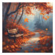 Embrace the beauty of autumn with this serene image of a forest pathway, blanketed in a rich carpet of golden, orange, and red leaves. A wooden bench sits peacefully under the autumn trees, offering a tranquil space to pause and enjoy the breathtaking fall landscape. This calming scene captures the essence of fall, perfect for adding a cozy, natural touch to your home decor.