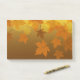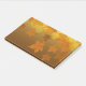 Autumn pattern with falling maple leaves and bokeh post-it notes