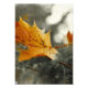 Orange maple leaf in the autumnal forest, colorkey effect.
