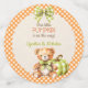 Gender neutral autumn plaid with teddy bear, pumpkin, leaves and bow.