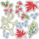 Elegant botanical sticker. Autumn plants, leaves and berries illustrations: bright maple, holly, mistletoe and juniper. Forest pencil drawing.