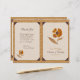 The text and background colour on this autumn pressed flower wedding program is fully customisable. The program itself is intended to be folded down the middle. You can change the text using the personalise option. For more extensive changes to the program, including changing the font, font colour, font size, or text placement, choose the "customise it" option. This is a great country looking program for a wedding in the fall or for a country wedding. The colours are various shades of autumn browns and tans. This program is currently customised for a wedding, but would also work great for an anniversary party program (renewal of vows perhaps) or even a church bulletin. All you need to do is change the wording.