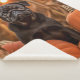 Experience the ultimate in comfort and companionship with our heartwarming cosy blanket featuring an adorable black pug amidst a field of pumpkins at sunset. It's the perfect invitation to get cosy with your furry friend and create precious memories together.