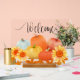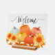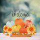 Attractive pumpkins and sunflower welcome sign.