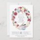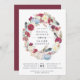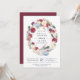 Fall in love with these rustic chic autumn bridal shower invitations featuring a wreath of burgundy watercolor flowers, boho feathers and white and pastel pumpkins. Personalise with your fall bridal shower details in navy blue lettering.
