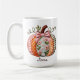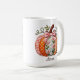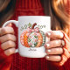 Sip your favourite fall beverage in style with this personalised autumn pumpkin mug! Featuring an adorable patchwork pumpkin design decorated with gingham, polka dots, and floral patterns, it’s topped with a sweet pink bow for an extra cosy touch. The vibrant fall colours and charming stitched-look details make it the perfect mug for pumpkin spice lovers, coffee drinkers, or tea enthusiasts. Add your name for a customised fall gift that’s great for friends, family, or yourself. Ideal for autumn mornings, cosy evenings, or as a seasonal kitchen accent.
