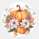Sticker is shown in the round with a lovely fall pumpkin floral watercolor print.