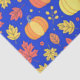Wrap your gifts in the essence of autumn with this vibrant fall tissue paper. Set against a deep blue backdrop, the design features an inviting pattern of warm-hued pumpkins in sunny yellow and soft orange. A vibrant scatter of crimson and gold leaves, along with tiny berries and flowers, completes this festive harvest pattern, perfect for adding a touch of cosy charm to any package.