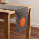 Dark brown table runner with pumpkins at each end. Great fall and Thanksgiving home decorations.