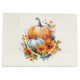 Gift bag with a fall themed image. Orange and white pumpkins surrounded by fall leaves and orange flowers.