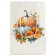 Gift bag with a fall themed image. Orange and white pumpkins surrounded by fall leaves and orange flowers.