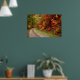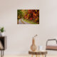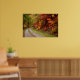 A single lane road lined with the vibrant colours of autumn in Virginia.