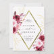 Celebrate a romantic autumn wedding with this elegant floral invitation featuring a gold geometric diamond frame, watercolor burgundy dahlias, blush peonies, and rustic fall foliage. Perfect for outdoor, boho garden, or country weddings with a cosy, vintage touch.