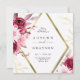Celebrate a romantic autumn wedding with this elegant floral invitation featuring a gold geometric diamond frame, watercolor burgundy dahlias, blush peonies, and rustic fall foliage. Perfect for outdoor, boho garden, or country weddings with a cosy, vintage touch.