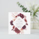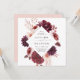 This wedding invitation features a watercolor flower wreath of dahlias, garden roses, and peony in burgundy red, maroon, blush pink over fall leaves with a diamond shape frame. For more advanced customisation of this design, please click the BLUE DESIGN TOOL BUTTON. Matching items are also available.