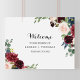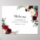 This autumn rustic dazzling burgundy welcome wedding poster is perfect for a modern wedding. The design features burgundy, red, navy, blue and blush radiant and graceful hand-painted flowers, inspiring natural beauty. Make this poster your own by the name of the bride and groom, and the date of the wedding.