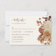 Autumn Rustic Leaves RSVP Card. Delight your guests with this horizontal meal choice RSVP card, showcasing a captivating blend of hand-painted watercolor artwork. Rich burnt orange and terracotta leaves, soft cream and beige dahlias, and bold copper and rust-coloured roses create a stunning autumn aesthetic against a crisp white background. Ensure your guests can easily select their meal preference while adding a touch of beauty to your wedding suite—start personalising yours today.