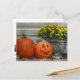 A pumpkin, jack-o-lantern and yellow mums are perfect for an autumn display.