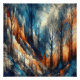 Our artwork features an abstract depiction of barren trees, in the autumn season, adorned with vibrant hues of blue, orange, and charcoal, presenting an artistic masterpiece that captivates the eye!