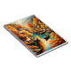 Capture the tranquil beauty of an autumnal mountain village with this enchanting illustration. The image showcases a serene riverside scene, where charming wooden houses nestle among vibrant orange and golden trees. Reflecting the warm hues of the foliage, the calm water mirrors the picturesque landscape, while small boats gently float, adding to the idyllic atmosphere. Perfect for note cards and postcards, this artwork evokes a sense of peace and natural splendour, making it an ideal choice for conveying messages of tranquillity and warmth.