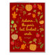 Decorative seasonal design with leaves, pumpkins, acorns, apples, berries and mushrooms. W.C. Bryant quotation.