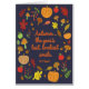 Decorative seasonal design with leaves, pumpkins, acorns, apples, berries and mushrooms. W.C. Bryant quotation.