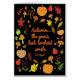 Fall/Winter design with leaves, pumpkins, acorns, apples, berries, pinecones and mushrooms. W.C. Bryant quotation.