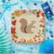 This beautiful autumn design features a cute squirrel surrounded by autumn leaves. The leaves are painted in bright shades of orange and red, creating a warm and cosy atmosphere.