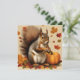 Autumn Squirrel with Pumpkin and Falling Leaves Card