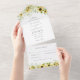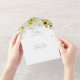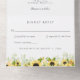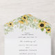 All in One Wedding invitation featuring elegant watercolor greenery and sunflowers. Each card includes a perforated RSVP card that’s addressed and ready for your guests to send back in the mail. Customise with your information or click "click to customise further" to change the font style, size, colour or background colour.