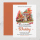 Autumn theme with mushroom watercolor wedding invitation