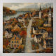 Autumn Town Folk Art Oil Painting Poster