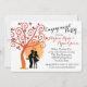 Engagement couple silhouette and tree with moon accented in fall orange and red colours. Personalise text as preferred on both front and back of this invitation.