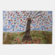 Summer has faded into the fall and the leaves have changed color on the tree and are dropping to form piles on the grass below. Painted in vivid pastel shades of brown, red, gold, ocher and orange against a background of a blue sky, this is a striking autumn tree original watercolor that will bring you the warm, rich colors of the fall.