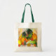 Brightly coloured vegetables with a few autumn leaves and flowers with a shadow print of vegetables in the background. Remind yourself, freinds or loved ones, to buy lots of bright coloured vegggies to give their health a boost, with this colourful bag!