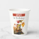 Birthday party paper cups featuring a frog celebrating autumn. Customise this product by adding your party information.