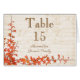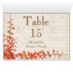 Beautiful red leaves of autumn on this vine climbing a white brick wall. The text on this table seating name card can easily be customized for any occasion wedding, baby shower, anniversary, graduation, sweet sixteen, birthday or other party event. The table number card is designed to be turned inside out so that the design is visible from both sides. You can also add guests names or other seating information by using the "Customize It" menu.This design also comes on many other ready to customize template products and can be placed on any other Zazzle product you might like. Contact me at mshake5918@yahoo.com for custom designs. Follow the link below to see the rest of the Autumn Vine Wedding product collection.